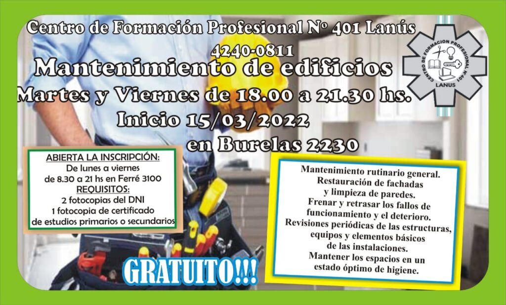 – Elementales de carpintería y pinturas de aberturas, elementales de albañilería y pintura de ambientes.